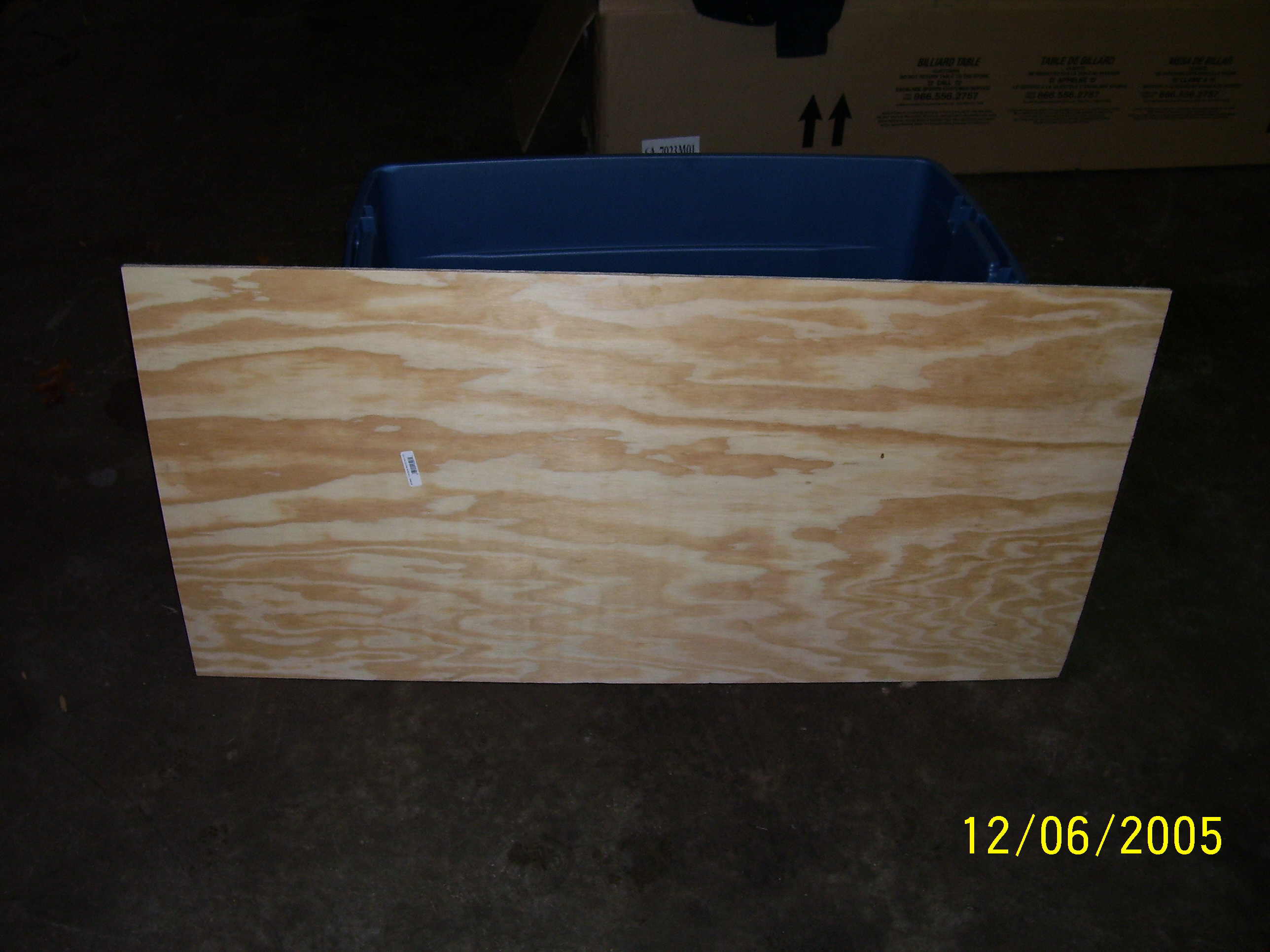 Cut plywood to 15 1/2" x 28", so it will fit into the bottom of your container. |