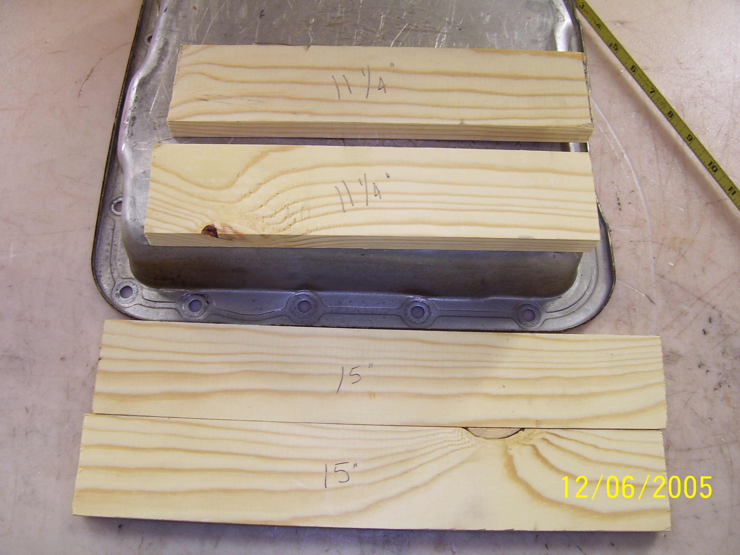 Screw 1" x 3" together to form a box that fits snug to pan. I use (3) screws per joint. This should now make a box around the tranny pan. |