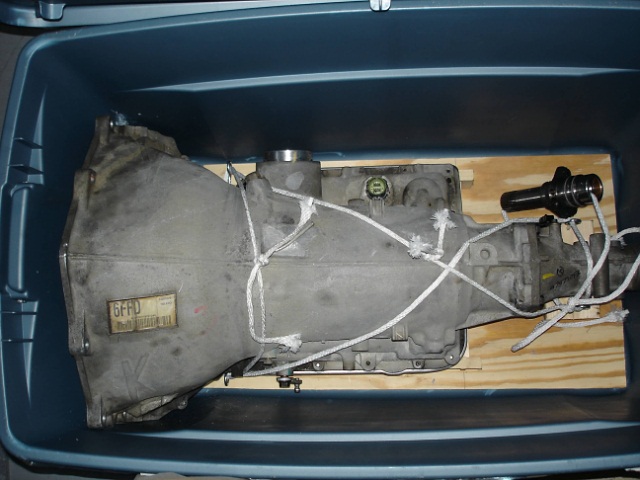 This is what it should look like with the transmission in the box. Notice that none of the transmission is pushing against the plastic container at any point. |