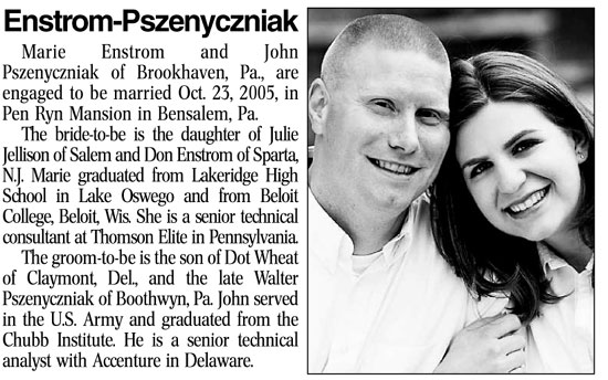 Our wedding announcement from the Oregonian